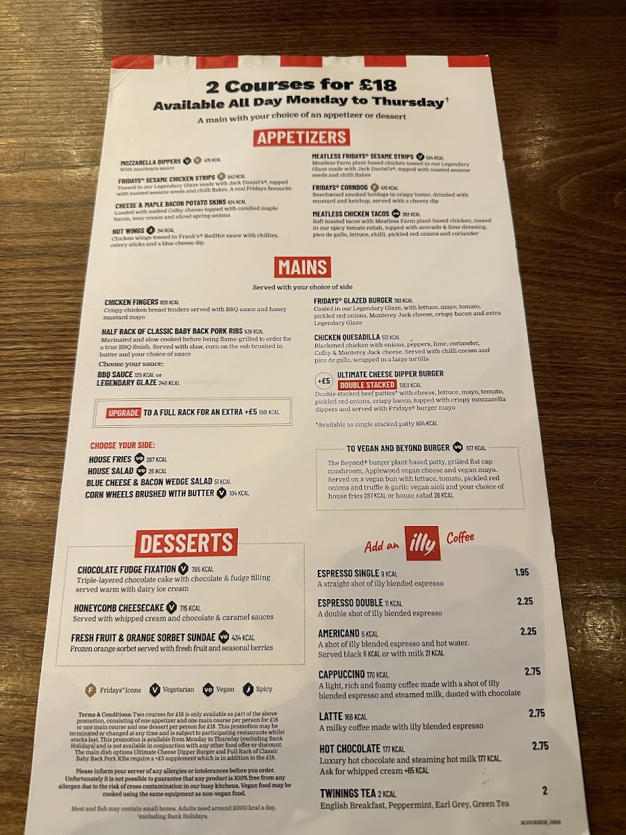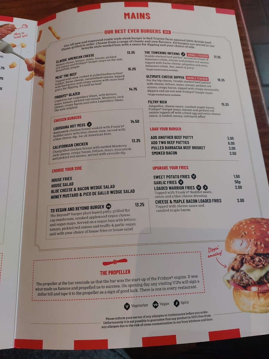 Double stacked beef burgers, mozzarella dippers, cheese, bacon and Fridays® mayo