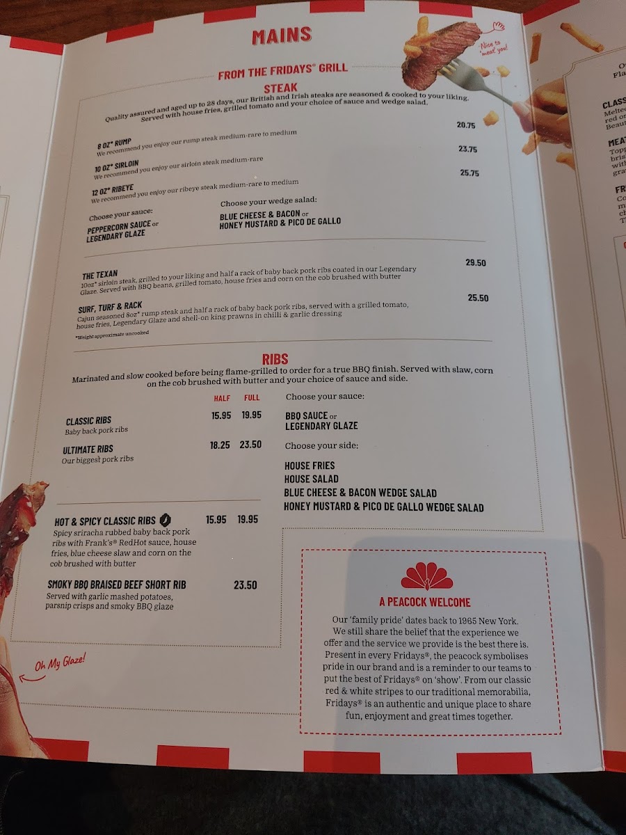 12oz* ribeye steak grilled to your liking, half a rack of baby back pork ribs coated in our Legendary Glaze, topped with Texan toothpicks and pickled red onions. Served with campfire beans, house fries and spicy corn on the cob
