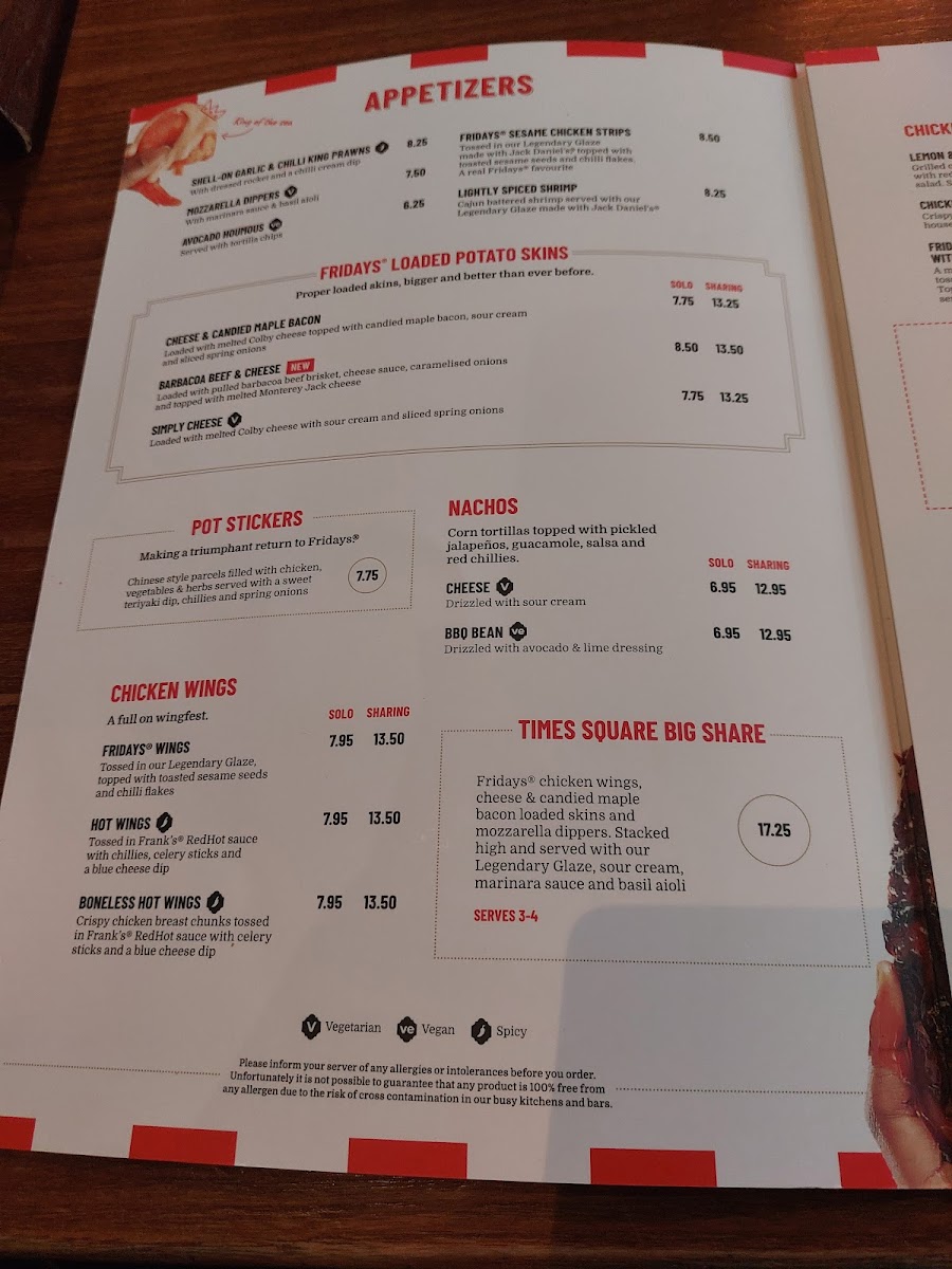 A Fridays® classic returns! Bands of grilled chicken breast, candied maple bacon, chopped salad, tomato, avocado, olives, crumbled Stilton, boiled egg, Colby cheese, croutons and dressed leaves. Served with your choice of red wine dressing, bleu c...